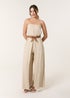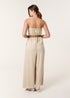 Blue Vanilla Beige Linen Belted Wide Bandeau Jumpsuit