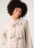 Blue Vanilla Beige Ruffle Pussy Bow Blouse