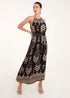 Blue Vanilla Black Abstract Halter Neck Belted Maxi Dress