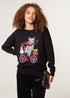 Blue Vanilla Black Christmas Cat On A Bike Jumper