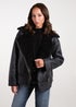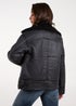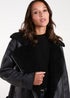 Layering for cold weather is made very easy with this leather-look shearling aviator jacket. Team with biker boots and rock the ultimate AW look.