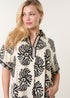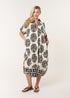 Keep your look comfortable but cool wearing this oversized abstract printed shirt dress. Team with brown sandals and a denim jacket.