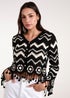 Blue Vanilla Black Crochet Zig Zag Tassel Detailed Button Front Cardigan