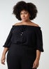 Blue Vanilla Black Curve Bardot Tie Front Top