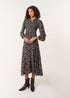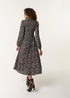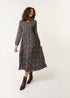 Blue Vanilla Black Ditsy Floral Long Sleeve Shirred Maxi Dress