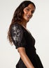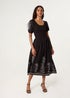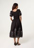 Blue Vanilla Black Embroidered Puff Sleeve Midi Dress