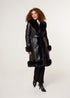 Blue Vanilla Black Faux Fur Trim Midi Coat