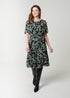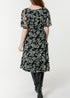 Blue Vanilla Black Floral Crew Neck Mesh Midi Dress