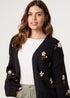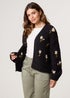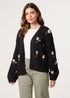 Blue Vanilla Black Flower Embroidery Detailed Cardigan