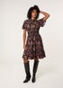 Blue Vanilla Black Frill Neck Shirred Waist Mini Dress