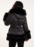 Blue Vanilla Black Fur Trim Belted Puffer Coat - Size 16