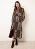 Blue Vanilla Black Geometric High Neck Pleated Dress