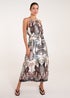 Embraces the timeless appeal of this classic neckline while adding a contemporary twist to elevate your style with this satin print. Team this dress with strappy heels.