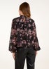 Blue Vanilla Black High Neck Bubble Hem Floral Blouse
