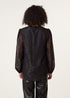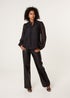 Blue Vanilla Black Jacquard Button And Tie Front Blouse
