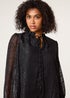Blue Vanilla Black Jacquard Button And Tie Front Blouse