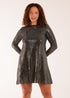 Blue Vanilla Black Long Sleeve Mirrored Swing Dress