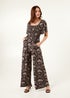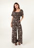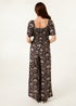 Blue Vanilla Black Palm Tree Print Square Neck Shirred Jumpsuit