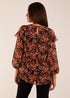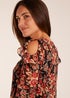 Blue Vanilla Black Pattern Cold Shoulder Frill Blouse