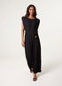 Blue Vanilla Black Pleated Shoulder Pad Jumpsuit