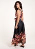 Blue Vanilla Black Satin Print Double V Wrap Dress