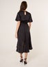Blue Vanilla Black Satin Wrap Frill High To Low Midi Dress