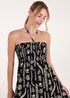 Blue Vanilla Black Shirred Bandeau Tie Neck Dress