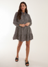 Blue Vanilla Black Shirred Cheetah Smock Dress