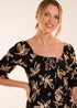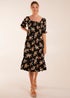 Blue Vanilla Black Tiered Puff Sleeve Abstract Print Shirred Midi Dress