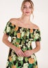 Blue Vanilla Black Tropical Shirred Waist Bardot Mini Dress