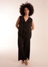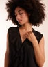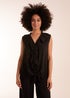 Blue Vanilla Black V Neck Ruffle Top with Knot