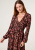 Blue Vanilla Black V Neck Shirred Long Sleeve Dress