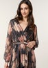 Blue Vanilla Black Watercolour Pleated Wrap Belted Dress