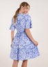Blue Vanilla Blue Abstract Shirred Waist V Neck Dress