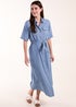 Blue Vanilla Blue Button Front Midi Shirt Dress