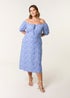 Blue Vanilla Blue Curve Ditsy Print Milkmaid Stretch Crepe Midi Dress