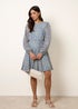 Blue Vanilla Blue Puff Sleeve Godet Dress With Self Tie