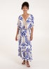 Blue Vanilla Blue Swirl Feather Print Tassel Dress