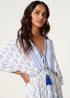 Blue Vanilla Blue V Neck Printed Tassel Dress
