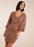 Blue Vanilla Bronze V Neck Puff Ball Sleeve Mini Dress