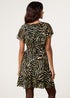 Blue Vanilla Brown Animal Print Frill V Neck Mini Mesh Dress