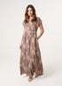Blue Vanilla Brown Belted Oversized Printed Jumpsuit