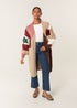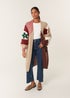 Blue Vanilla Brown Colour Block 3D Flower Longline Cardigan
