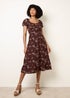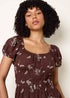 Blue Vanilla Brown Embroidery Milkmaid Midi Dress
