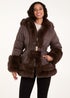 Blue Vanilla Brown Faux Fur Trim Belted Puffer Coat