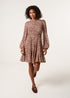 • Blue Vanilla Brown Godet Dress With Self Tie