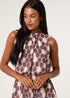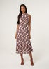 Blue Vanilla Brown High Neck Geometric Print Pleated Dress