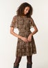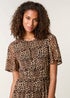 Blue Vanilla Brown Leopard Print Mesh Crew Neck Mini Dress