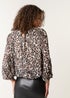 Blue Vanilla Brown Leopard Print Tie Neck Puffball Top
