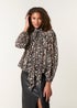 • Blue Vanilla Brown Leopard Print Tie Neck Puffball Top